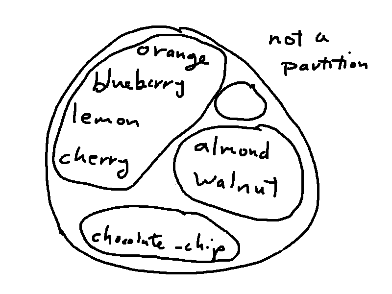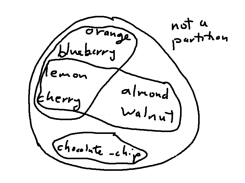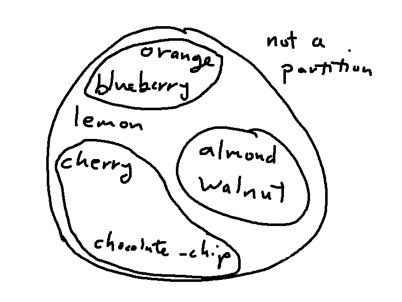 Let's look at the idea of a "partition" of a set. Remember our set A containing add-ons for muffins: