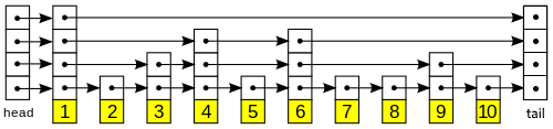 Here is an illustration of a skip list (note that this drawing is only singly linked).