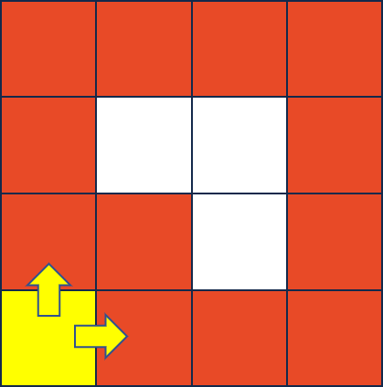 Finally, in the image above, only orange pixels were visited. A point must NOT be visited in a traversal if either of the following statements are true: