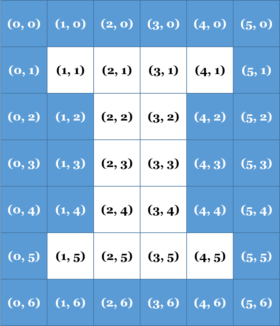 Finally, in the image above, only orange pixels were visited. A point must NOT be visited in a traversal if either of the following statements are true: