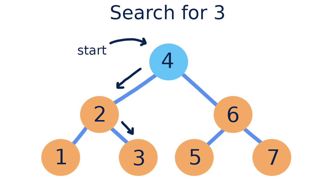 Binary search trees are called “search trees” because they make searching for a certain value more efficient than in an unordered tree. In an ideal binary search tree, we do not have to visit every node when searching for a particular value.
