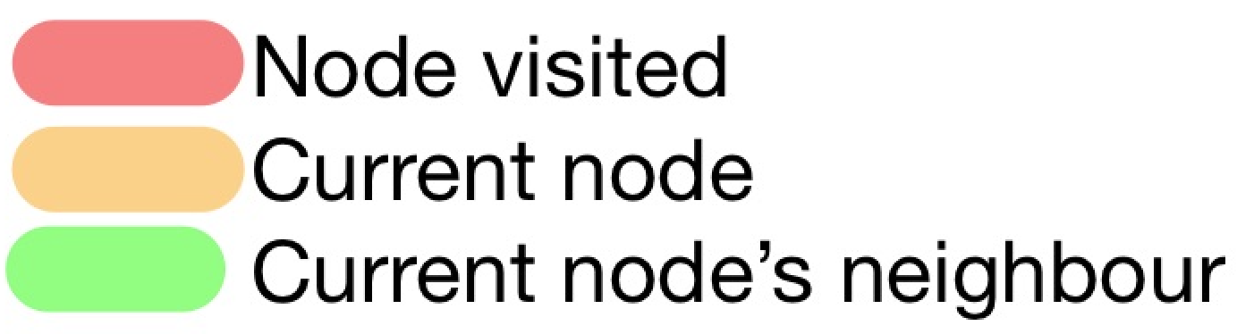 Secondly, we have an empty visited set now because we have not yet visited any node. To visualize this set on the graph, we will use the red color.