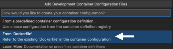 Open the folder you created previously, and make sure you select the ‘From ‘Dockerfile’ option in the popup.