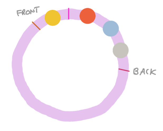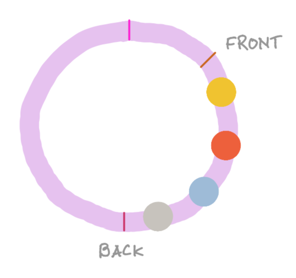 When implementing queues and stacks with arrays, it's important to visualize them as "circular" arrays. The beginning and end of an array do not matter to a stack or a queue. Simply keep track of the indices that locate the front and back of the queue/stack. One of the limitations with this implementation is that it gives a limit to the amount of elements the data structure can store.
