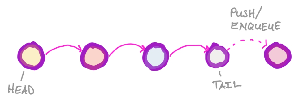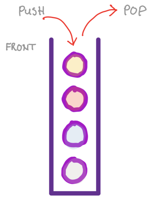 push- adds an element. (For queues, this is also known asenqueue)pop- queries/removes an element. (For queues, this is also known asdequeue)