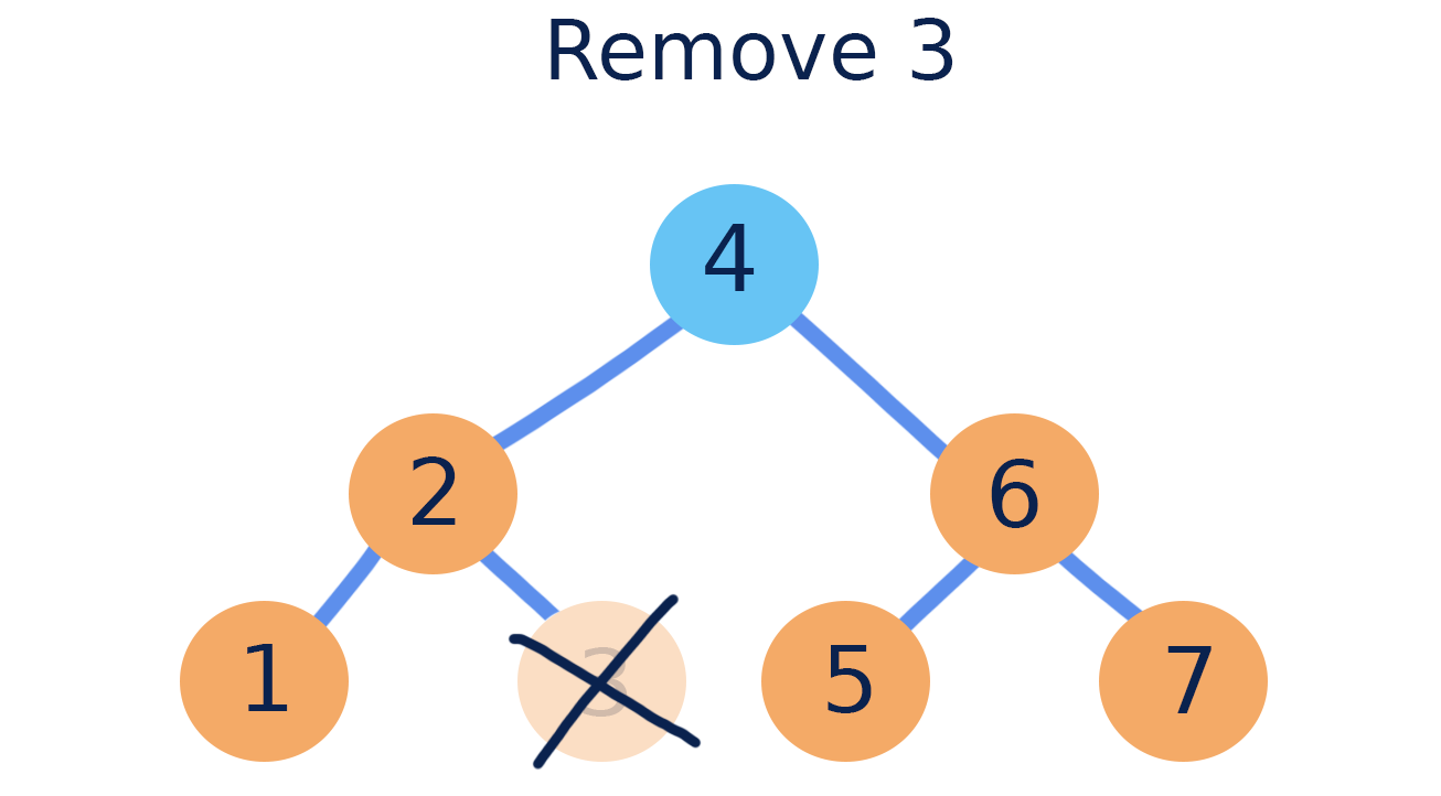 When removing from a binary search tree, we are concerned with keeping the rest of the tree in the correct order. This means removing is different depending on whether the node we are removing has children. There are three cases:
