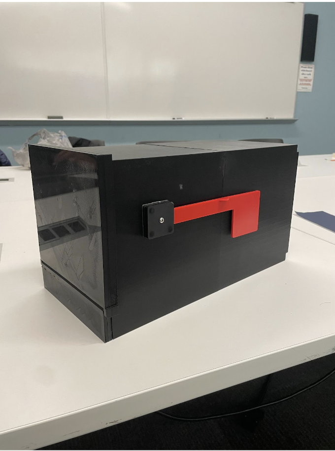 | Secure Mailbox with Mobile Connectivity Team Members: Neehar Sawant (neehar2), Avadh Patel (apate429), Roshun Navin (rnavin2) Problem: Mail is an integral part of how we receive information from other people, our communities, and businesses alike. However, even though it is delivered almost everyday, mail containing your personal information is in many cases not secure and risks being taken by others. While apartment buildings have keys which are only possessed by the tenant and mailman, many single family and townhomes have a conventional mailbox which is able to be opened by anyone. Currently, smart boxes exist for packages that can be placed outside your front door to be notified when you have a package, but this does not solve the issue for normal paper mail. Upon further inspection, there does not seem to be a smart mailbox which is both secure and can be mounted in place of an existing mailbox. Solution Overview: Our solution is to create a mailbox that is able to automatically lock as well as schedule when it is unlocked and send status updates to a mobile application. The mailbox will use a magnetic contact sensor to determine when the mailbox is opened and then send a signal to the PCB that sets a ready state and waits for the close signal. Once the door is closed, the magnetic contact sensor will send another signal to the PCB which in turn instructs the lock to close. The PCB will also interface with the mobile application which will send unlock and lock signals to the PCB to control the actions of the locking mechanism. This system will also be used for unlocking the mailbox during a scheduled window which can be controlled in the app. In order to notify the user if mail is present in the mailbox, multiple ultrasonic sensors will be used to detect if mail is covering any one of them. This information will be sent back to the PCB and then be sent to the mobile application to alert the user of mail. Solution Components: - Micro Servo Motor: This small, low powered, motor will be used to lock and unlock the mailbox. It will be attached to a metal extension to secure the lock. Something such as: FeeTech S0005 analog servo. - Ultrasonic Sensor: This will be used to determine with greater accuracy than a weight sensor whether mail is present inside of the mailbox by checking if the sensor is covered or not. https://www.sparkfun.com/products/15569 - Magnetic Contact Sensor: This will be used to determine when the mailbox is being opened and closed. The magnetic sensor has two components and when they are separated a signal is delivered. It will be separated when the door is opened. Something such as: 7939WG Magnetic Contact https://buildings.honeywell.com/us/en/products/by-category/sensors/contact-sensors/7939wg-magnetic-contact - Wireless module: This will be used to allow the microcontroller to communicate with our mobile application. Something such as: ESP8266. - Mailbox: We will use a 3d printer to create the mailbox outer casing - Battery: Lithium Ion Battery - https://www.sparkfun.com/products/13855 # Subsystem 1: Power We will utilize a battery for power and take the necessary steps to supply the PCB, motor, sensors, and other components with the required voltage demands. # Subsystem 2: Locking Mechanism The locking mechanism will be utilizing a servo to lock and unlock the mailbox. When the servo is in a horizontal position it will be used as a barrier between the door and the chassis so that the door cannot be opened. It will be moved to a vertical position when the user wants the mailbox to be unlocked in order for the door to open. The locking mechanism will be connected to the PCB which will send the unlock and lock commands. # Subsystem 3: Sensors Subsystem There will be ultrasonic sensors in the base of the mailbox and it will detect whenever mail or a package is placed in the mailbox. They will be placed at several positions along the base to ensure mail is detected and the user is accurately notified. We will also have a magnetic contact sensor at the top of the door. This will allow us to accurately know when the door is closed so that we can accordingly lock and secure the mail. Furthermore, we will have a wireless module allowing WIFI connectivity and data transfer to and from the mobile app. All sensors will be connected to and controlled from the PCB. # Subsystem 4: Application There will be a mobile application that will be created in order for the user to manually unlock and lock the mailbox. The user will also be able to set time windows in which the mailbox will be unlocked in case of multiple deliveries. Criterion for Success: - The mailbox is able to automatically lock and secure the mail after closing - The mailbox is able to detect mail present and send a notification to the user’s application - The user is able to lock and unlock the mailbox remotely from the user’s application - User is able to specify window of time where mailbox will be unlocked |