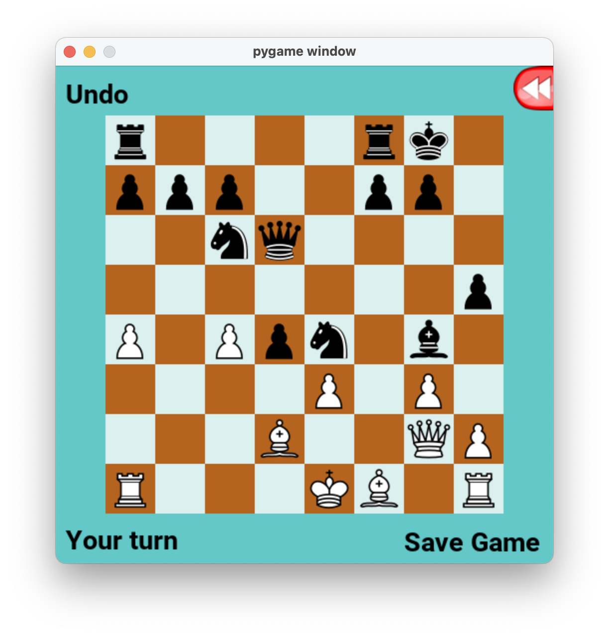 The heuristic we've been using, until now, is the default PyChess heuristic: it assigns a value to each piece, with extra points added or subtracted depending on the piece's location. For extra credit, if you wish, you can try to train a neural network to compute a better heuristic.