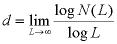In general, to find the dimension d of a lattice-based fractal, place a square box of diameter L over it and count the number of unit elements N(L) contained in that box. The fractal dimension d is then given by: