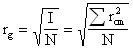 The radius of gyration is another useful value for describing fractal patterns. The radius of gyration, rg, is defined as the radius at which a point of mass (or number of filled spaces, N, in this case) equal to that of the entire pattern would have to be placed to have the same moment of inertia, I. The moment of inertia itself can be calculated in terms of the number of particles from the sum of the square of the distance of each particle from the centroid, rcm, so that the radius of gyration is given by the following equation.
