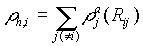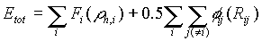 where r h,i is the host electron density at site i due to the neighboring atoms, Fi(r ) is the embedding energy of atom i placed into the background electron density r , and f ij(Rij) is the core to core pair interaction between atoms i and j separated by the distance Rij. The electron density is approximated by the superposition of atomic densities as [7]: