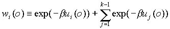 the value by uf(o) and define wf(o)=k exp(-buf(o)),