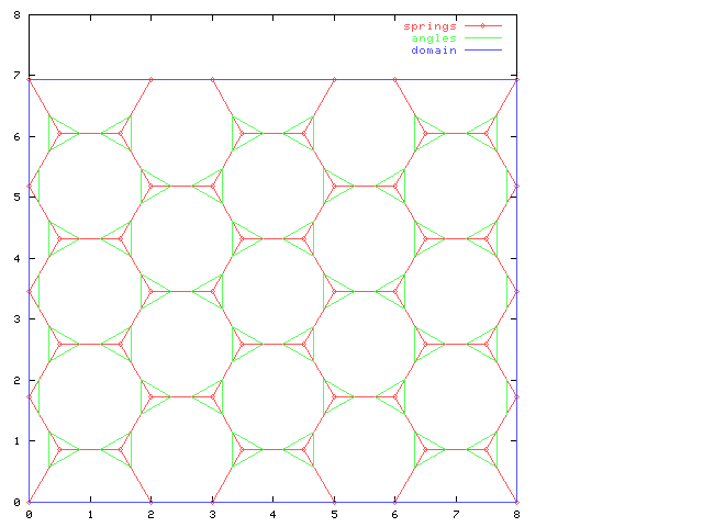 A characterstic of rubber materials is their tendency to deform in a volume-preserving (or, in two dimensions, area-preserving) fashion (DeSimone and Dolzmann 2000). Rather than imposing such a deformation to the network a priori, we decided instead to see whether the system responded to the imposed elongation in an area-preserving manner on its own. Since the new height of the box is known from the imposed extension, monitoring the average width of the box directly leads to knowledge of the new domain area. Thus, this serves as a check on how well our model represents reality.