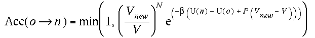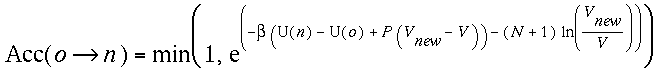 in ln V, the probability of accepting this ln Vnewis