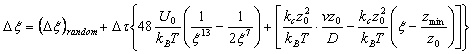The Lennard-Jones parameters used were sigma= 1nm and epsilon= 5kT . Reduced units were used in our code for efficiency and easy analysis of the results. The timestep was constructed to be non-constant, depending on the proximity of the anchored molecule to the rupture distance. This is done such that the initial stages of the run are computes at larger steps which gets smaller as the rupture distance is approached. The random noise is supplied by a uniform random number generator (ran1, numerical recipes) and transformed by the Box-Mueller method algorithm (gasdev) which generates a random deviates of standard normal distribution. A variable transformation is then performed on each call x = x' times s where s is the desired variance of value s = sqrt(2Dt) in accordance with the random noise of the langevin equation.