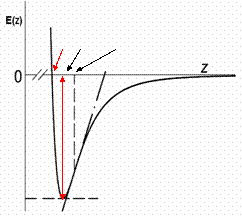 Where Hummer and Szabo have used a very simple potential for their study while comparing with the experimental unfolding of the titin molecule, we hereby decided to use the Lennard-Jones potential as the potential form of the inteaction with an effective spring constant (k=km + kc , as in Figure 3 below) to imitate the springiness and response of the molecule in a single molecular bond rupture experiment. They have made approximations in their calculations in order to avoid the complexity of the analytical solution for their simple model, while we are depending on computer simulations to scale the different regimes by a modification of the timestep of the simulation. We have also introduced a random noise in the system to imitate the brownian contribution of the local environment of a molecule to its motion.