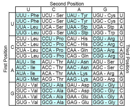 The genetic code is ubiquitous across essentially all life. It is read in triplets of the four standard RNA nucleotides (U, C, G, A), called codons, with each unique codon specifying one of the 20 amino acids to be added in sequence to a protein. There are 64 total codons coding for these 20 amino acids so there is significant degeneracy within the code, meaning multiple codons generally code for the same amino acid. Among the 64 possible codons, three “stop codons” (UAA, UAG, and UGA) do not specify any amino acid, and instead signal the end of a protein. In the case of the wild type code, single nucleotide substitutions (SNS's) often have no effect on a specified amino acid; for instance the codon CUG, specifying leucine, can undergo any substitution in the third base position (CUU, CUC, CUA) as well as a first position substitution to UUG with no effect on the resulting amino acid. The wild type genetic code appears to go further than merely conserving specific amino acids; it appears to conserve physico-chemical properties as well by grouping chemically similar amino acids together in “codon-space”. In the event that a given codon specifying one amino acid undergoes an SNS to become a codon specifying a different amino acid, our genetic code is set up so that the two amino acids are often chemically very similar. The most important chemical property in this respect is an amino acids' polar requirement , a measure of its hydrophobicity or -philicity (Haig 1991).