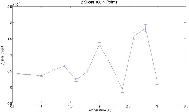 with temperature and the heat capacity is constant as expected. The theoretical value for the heat capacity is